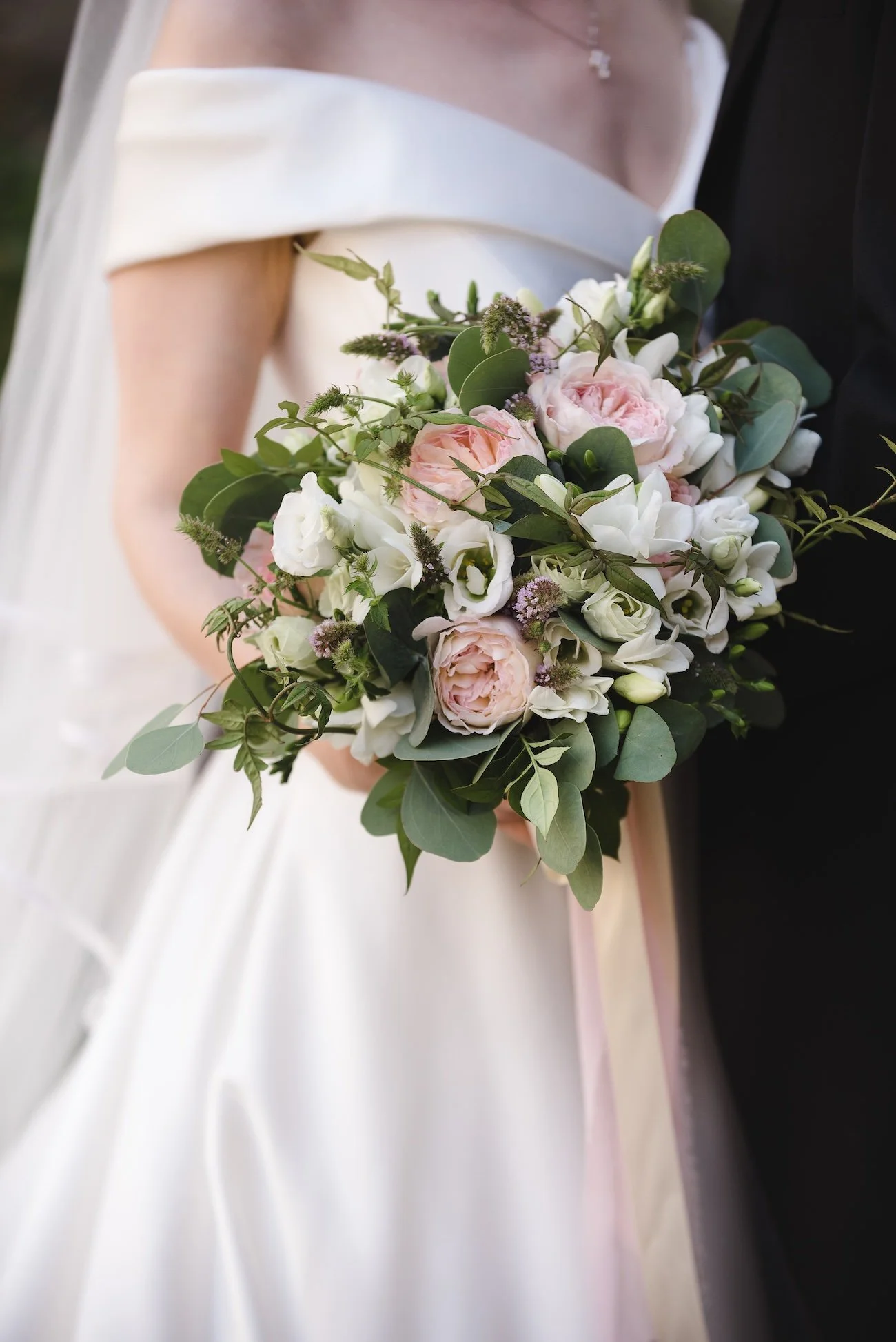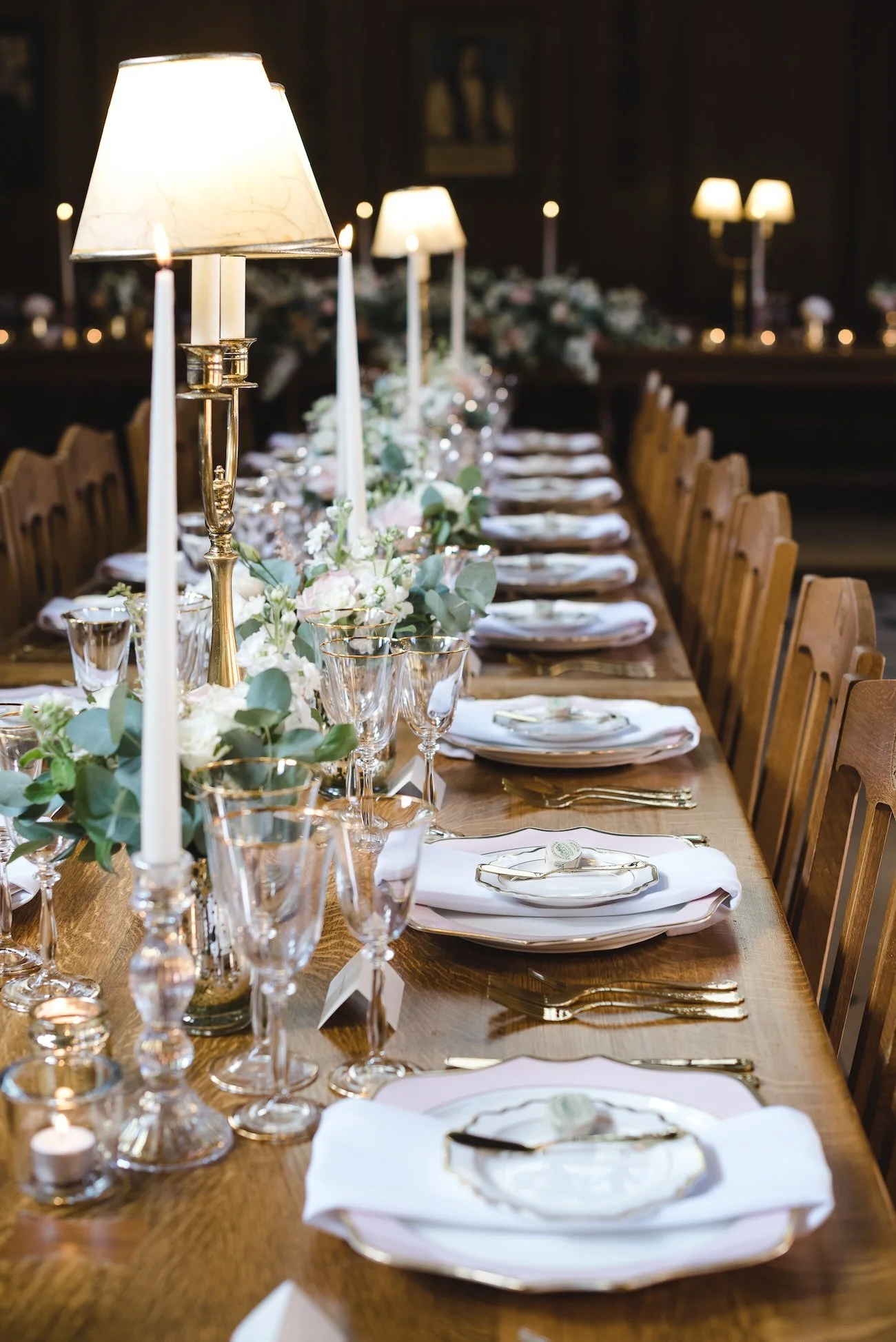 The bride’s focus on florals paid off beautifully, a delicate mix of blush pink, white and green brought the space to life. The tablescape was beautiful, featuring long tables adorned with candles with subtle gold and pink accents that created a warm, romantic glow.